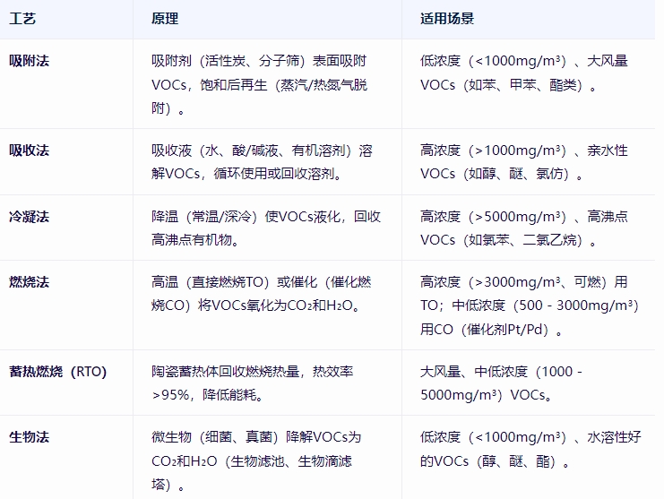高濃度VOCs:先冷凝回收有機物(>5000mg/m³),殘余氣再燃燒(TO/RTO)。