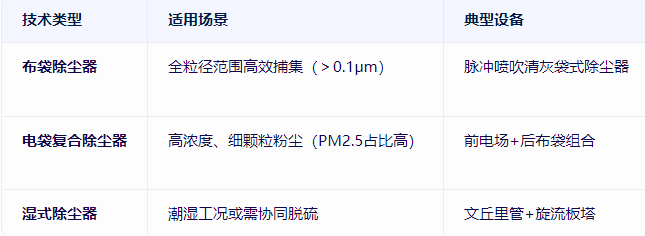 分級處理:粗顆粒預(yù)分離→細(xì)顆粒高效捕集。